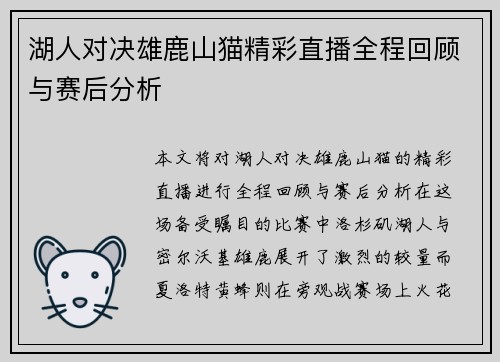 在本篇文章中,我们将对湖人队与篮网队之间的精彩对决进行全面回顾与分析。本文将从四个方面详细探讨这场比赛的亮点,包括赛前形势分析、比赛过程中的关键时刻、球员表现评析以及赛后总结与展望。在赛前形势分析中,我们将关注两队的近期状态和战术安排;比赛过程中的关键时刻将着重描述转折点和决定胜负的瞬间;球员表现评析则会针对关键球员的发挥进行深入分析;最后,在赛后总结与展望部分,我们将考量这场比赛对两队未来走势的...