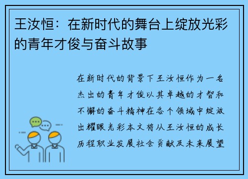 在中国男篮的历史长河中,赵继伟无疑是一个值得铭记的名字。他不仅是一位出色的球员,更是团队精神与拼搏意志的象征。随着新征程的开启,赵继伟将领衔中国男篮迎接新的挑战。在这篇文章中,我们将从四个方面详细探讨赵继伟如何在比赛中展现拼搏精神、强调团队协作以及推动中国男篮走向更高峰。这四个方面分别是:个人能力的提升、团队合作的重要性、对年轻球员的引领作用以及面对国际赛场的挑战。通过这些探讨,我们能够更全面地理...